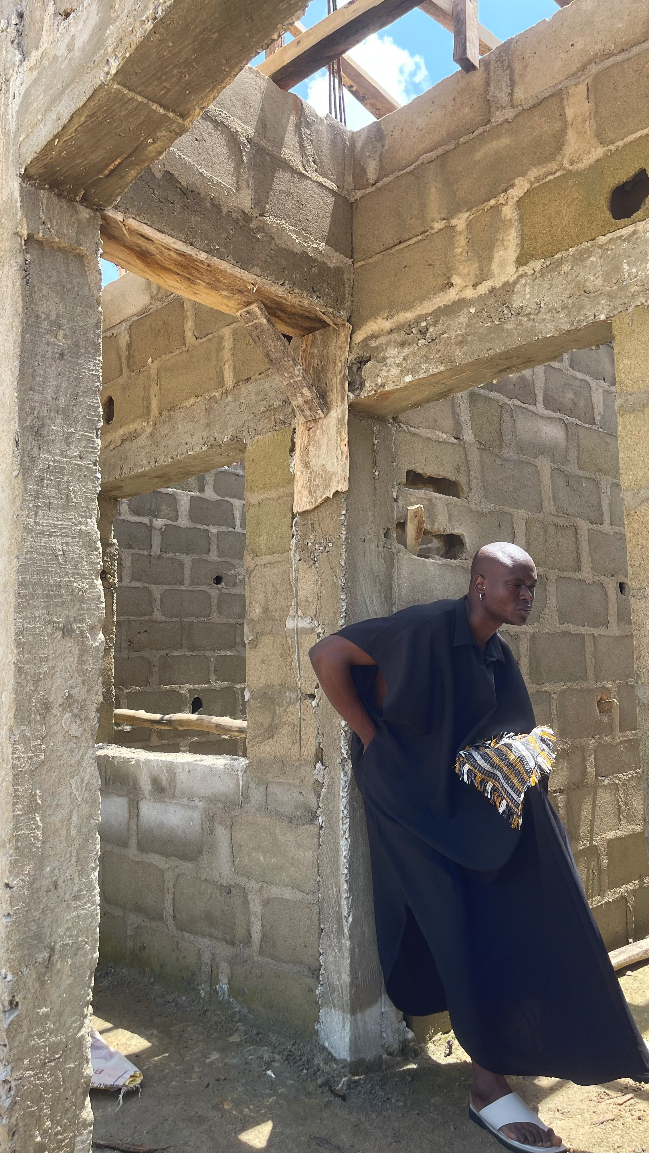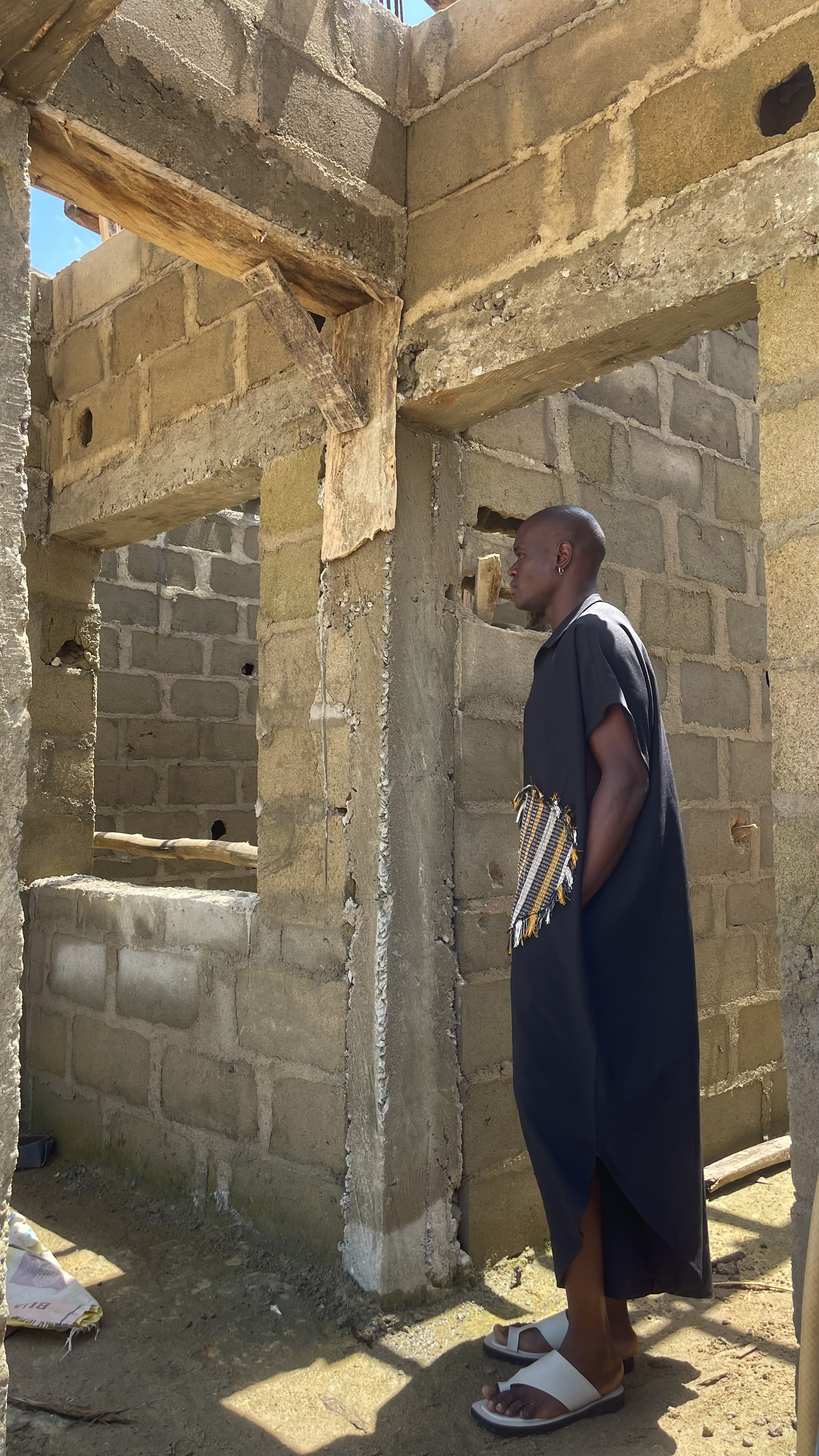 Free sized kaftan with the map of Africa design from our SS25 in asooke adorned round with fringes made from asooke.