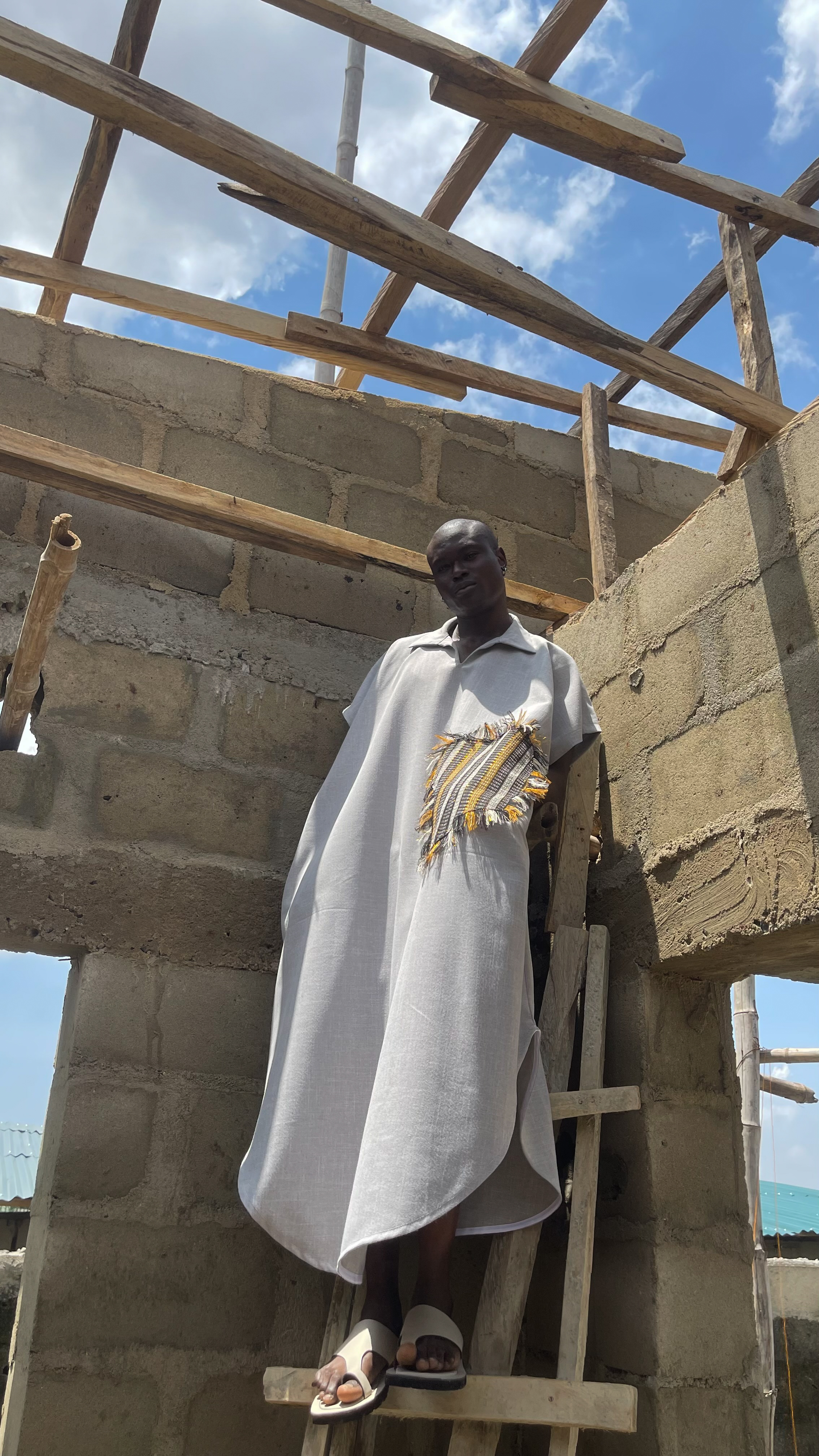 Free sized kaftan with the map of Africa design from our SS25 in asooke adorned round with fringes made from asooke.
